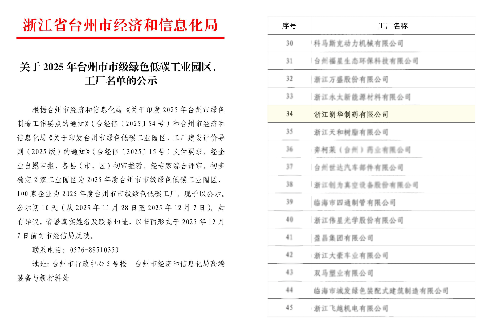 近日,经企业自评、区县初审、专家评审及综合评定等多轮严格遴选,朗华制药凭借在绿色生产、低碳运营、资源高效利用等方面的突出表现,成功斩获“2025年台州市市级绿色低碳工厂”荣誉称号,标志着公司在践行绿色制造理念、推动产业转型升级的道路上迈出了里程碑式的一步。